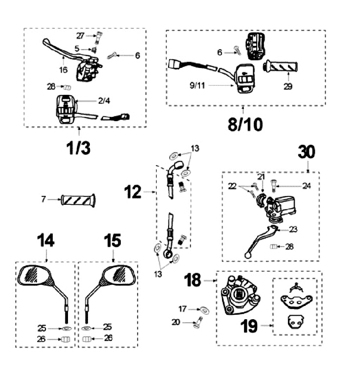 Schakeleenheid links met remhendel -PEUGEOT- Peugeot Speedfight 1 AC/LC, Vivacity (-2008)