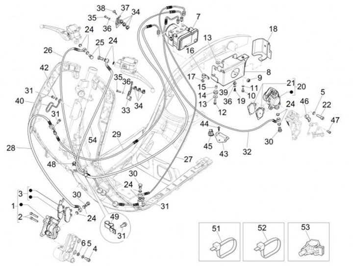 Bevestigingsplaat voor remleiding -PIAGGIO- Vespa GTV 300 (ZAPMA3302), Vespa GTV HPE 300 (ZAPMA3602, ZAPMA362, ZAPMD3102), Vespa 946 125 (ZAPM80100, ZAPM80101), Vespa 946 Red 125 (ZAPM80100, ZAPMA7100, ZAPM80101), Aprilia SRV 850 (ZAPM55103, ZAPM55104, ZD