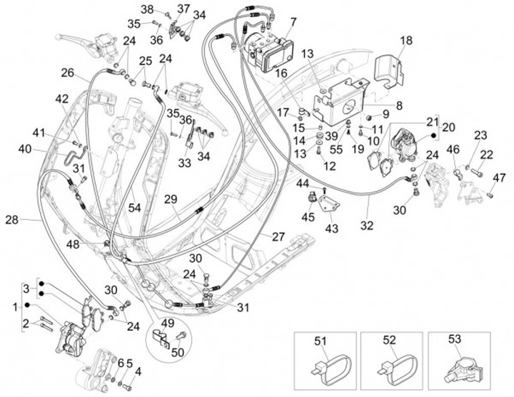 Controle unit ABS -PIAGGIO- Vespa GTS 125 (ZAPMA3100), Vespa GTS 150 (ZAPMA3200, ZAPMA3100), Vespa GTS 300 (ZAPM45200, ZAPM45202, ZAPMA3300), Vespa GTS Super 125 (ZAPM45300, ZAPMA3100, ZAPM45301), Vespa GTS Super 300 (ZAPM45200, ZAPM45202, ZAPMA3300), Ves