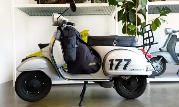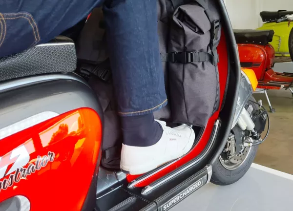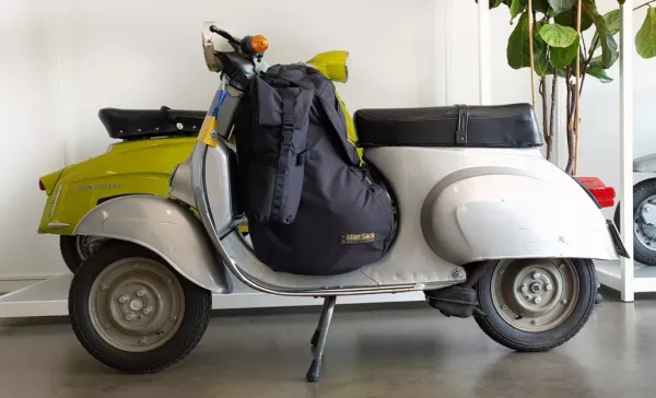 We hebben de (R)ollersack *original* van Sabine als gloednieuwe toevoeging aan ons programma. Sabine is zelf scootmobielrijdster en ontdekte een behoefte aan specifieke reistassen voor scooters als ze op reis en op bijeenkomsten was. Omdat ze niets kon vinden dat aan haar wensen voldeed, gebruikte ze haar naaikunsten om een tas te ontwikkelen die was afgestemd op de behoeften van elke scooterrijder. De focus lag op functionaliteit, de tas moest goed in de step passen, veilig zijn en gemakkelijk te bevestigen zonder het lakwerk te beschadigen. Daarnaast moest de gebruikelijke loopbagage er goed in passen en moest alles modulair zijn zodat het systeem kan worden uitgebreid. Sabine slaagde hier perfect in en we konden haar overtuigen om samen met ons een kleine serie te lanceren die in Europa wordt geproduceerd. Alle andere (R)ollersacks zijn daarentegen *origineel* en met de hand op maat gemaakt. Voor een onafhankelijke praktijktest heb ik onze vriend Atze gevraagd een oogje in het zeil te houden. Als globetrotter met zijn Vespa en met meer dan 72.000 km op zak, was hij de perfecte kandidaat om een deskundige mening te geven over geschikte scooterbagage.