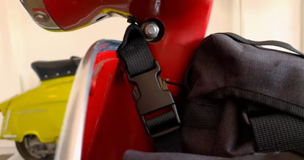 Bovendien zijn de verpakkingskoorden waarmee de tas aan de scooter wordt bevestigd op strategische punten bevestigd, zonder dat er extra bagagedragers of extra haken nodig zijn.