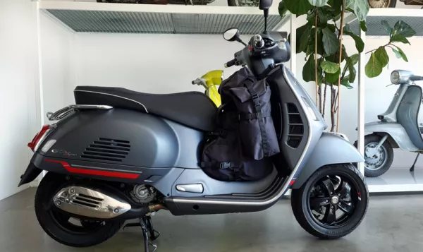 De scootertas is ontworpen volgens de afmetingen en speciale kenmerken van een scooter met versnelling, zodat je gemakkelijker kunt rijden en bij de remmen kunt zonder dat er iets in de weg zit. Behoud van stabiliteit zonder extra gewicht aan de voor- of achterkant. Natuurlijk past het ook op de Vespa GTS & Co. De riem om hem aan het stuur te bevestigen kan echter niet worden gebruikt.