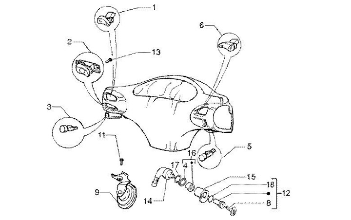 Aan-uit-slotbus -PIAGGIO- Vespa GT 250 (ZAPM45102), Vespa GT L 125 (ZAPM31100, ZAPM31101), Vespa GT L 200 (ZAPM31200), Vespa GTS 125 (ZAPM31300), Vespa GTS 250 (ZAPM45100, ZAPM45101), Vespa GTS 300 (ZAPM45200, ZAPM45202), Vespa GTS Super 125 (ZAPM45300)