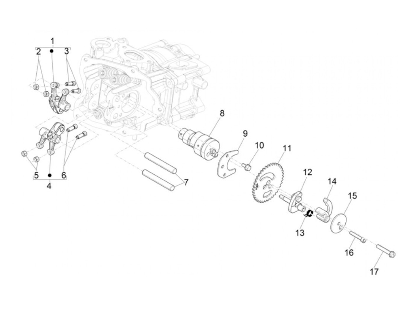 Schroef voor tuimelaars -PIAGGIO- Vespa GTS 250 (ZAPM45100), Vespa GTS HPE 300 (ZAPMA3600, ZAPMD310), Vespa GTS Super HPE 300 (ZAPMA360, ZAPMD3100), Vespa GTV HPE 300 (ZAPMA3602, ZAPMA362, ZAPMD3102), Gilera Runner 2 (RST) 125 (ZAPM46301), Piaggio