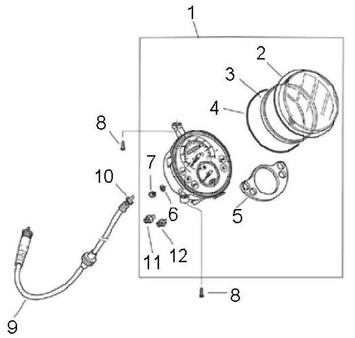 Lamp met fitting -PIAGGIO- W2x4.6d - 12V, 1.2W - Indicatielamp toerenteller