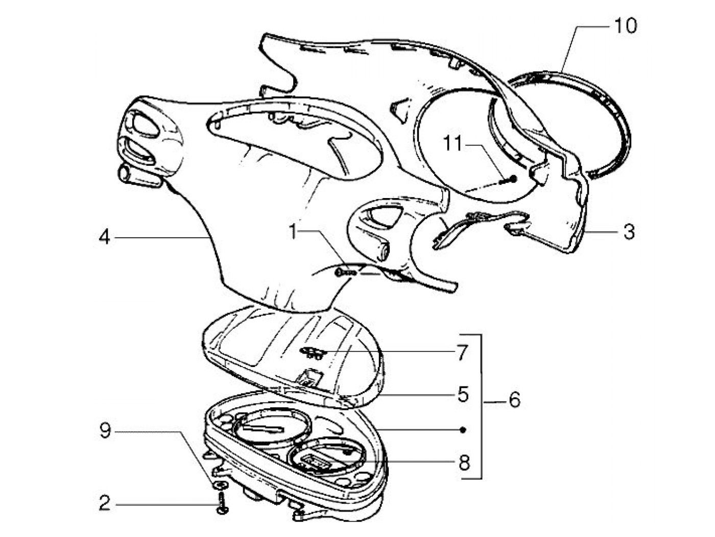 Snelheidsmeter omranding -PIAGGIO- Vespa ET2, ET4 - grijs kunststof, onbeschilderd