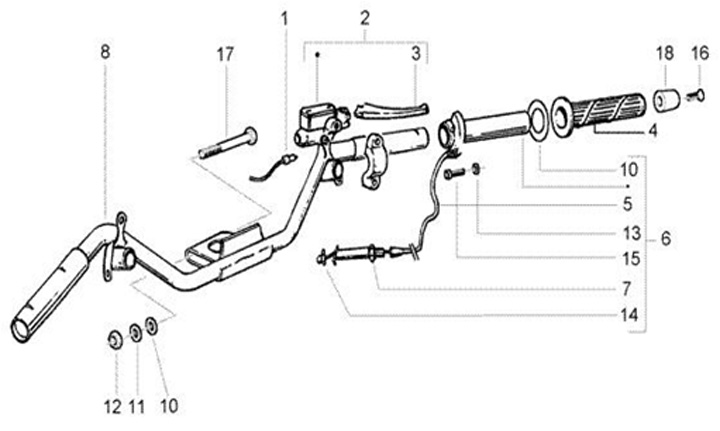 Stuur -PIAGGIO- Gilera Runner 125 (ZAPM24200, ZAPM24100, ZAPM46100, ZAPM24000, ZAPM07000, ZAPM46300, ZAPM46301), Gilera Runner 180 (ZAPM08000), Gilera Runner 200 (ZAPM24300, ZAPM46200, ZAPM46400, ZAPM46401), Gilera Runner 50 (ZAPC46100, ZAPC46200, ZAPC462