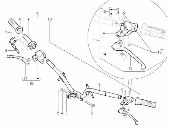 Veer voor remhendel links -PIAGGIO- Gilera Runner, Stalker, Piaggio Fly, Hexagon, Liberty, NRG, Quartz, Sfera, SKR, Skipper, TPH, ZIP, Vespa ET2, ET4, LX, LXV, S