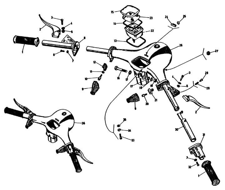 Stuur schakelkabel mount -Mauro Pascoli , zonder stelschroeven- Vespa Wideframe V30T tot V33T, VM1T, VN1T, Vespa 150 VL1T-3T, VS1T