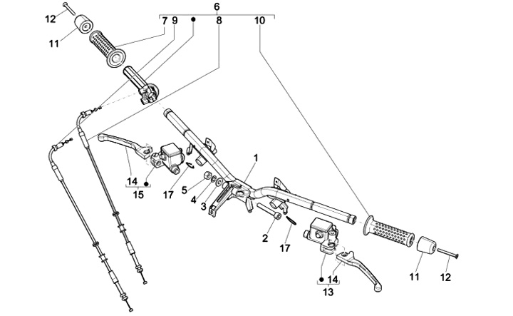 Gashandgreep en gaskabels -PIAGGIO- Vespa GTS 250 (ZAPM45100), Vespa GTS 300 (ZAPM45200, ZAPM45202), Vespa GTS Super 125 (ZAPM45300, ZAPM45301), Vespa GTS Super 300 (ZAPM45200, ZAPM45202)