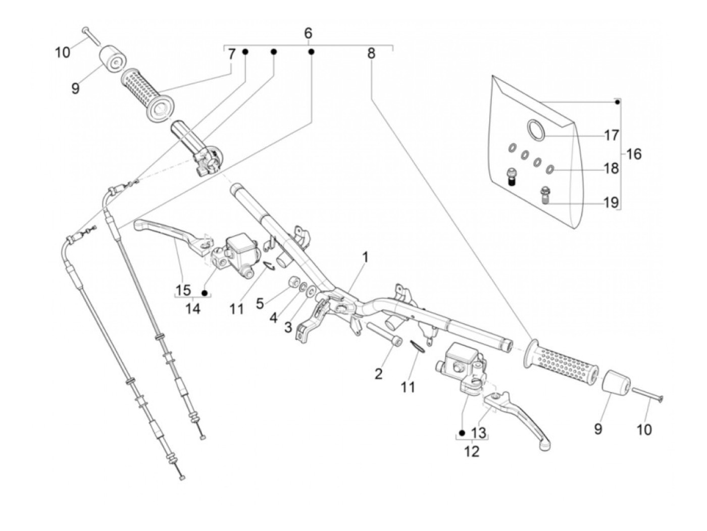 Stuur -PIAGGIO- Vespa GTS 125 (ZAPMA3700), Vespa GTS HPE 300 (ZAPMA3600, ZAPMD310), Vespa GTS Super 125 (ZAPMA3700), Vespa GTS Super HPE 300 (ZAPMA360, ZAPMD3100)