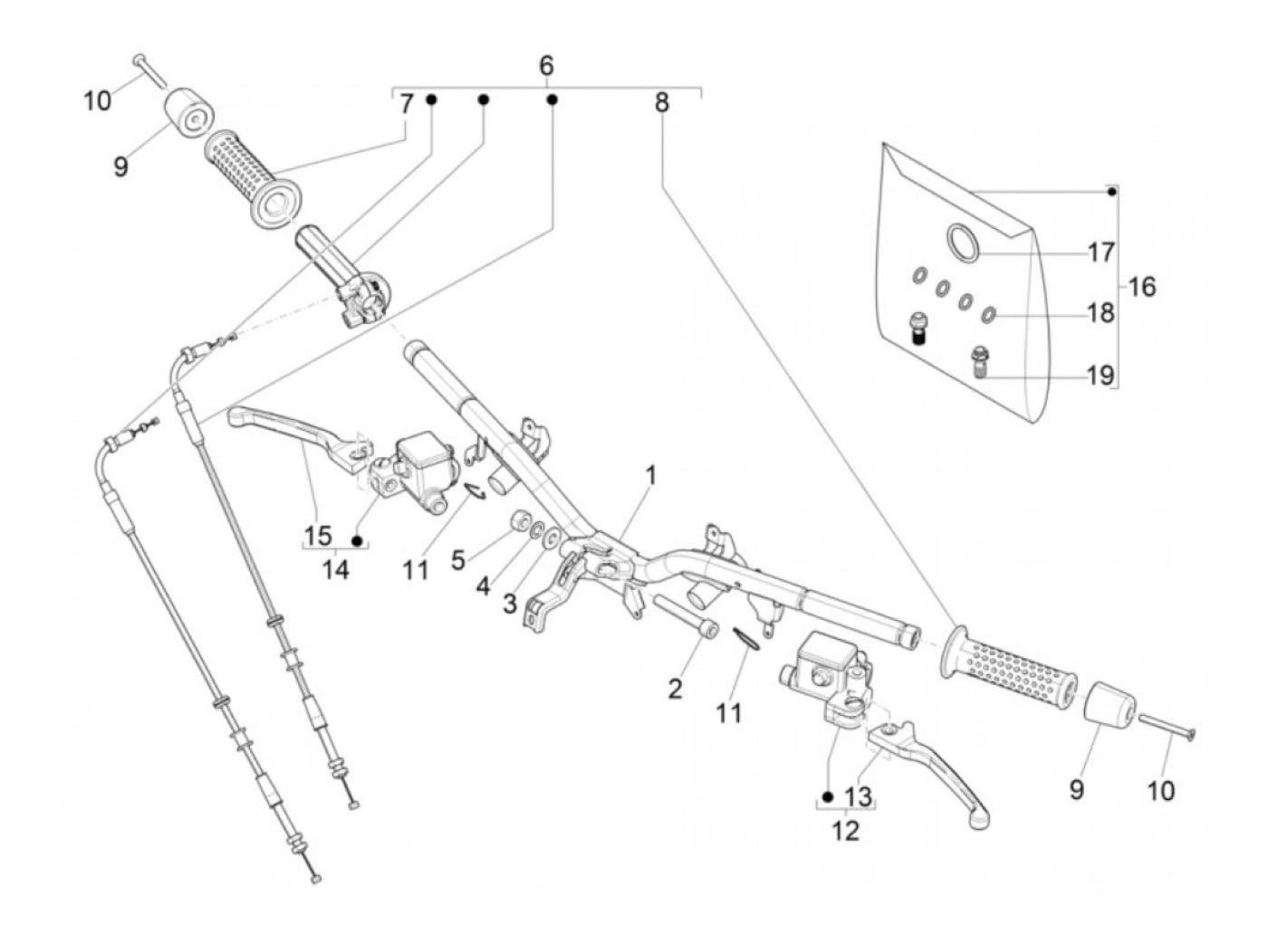 Stuur -PIAGGIO- Vespa GTS 125 (ZAPMA3700), Vespa GTS HPE 300 (ZAPMA3600, ZAPMD310), Vespa GTS Super 125 (ZAPMA3700), Vespa GTS Super HPE 300 (ZAPMA360, ZAPMD3100)