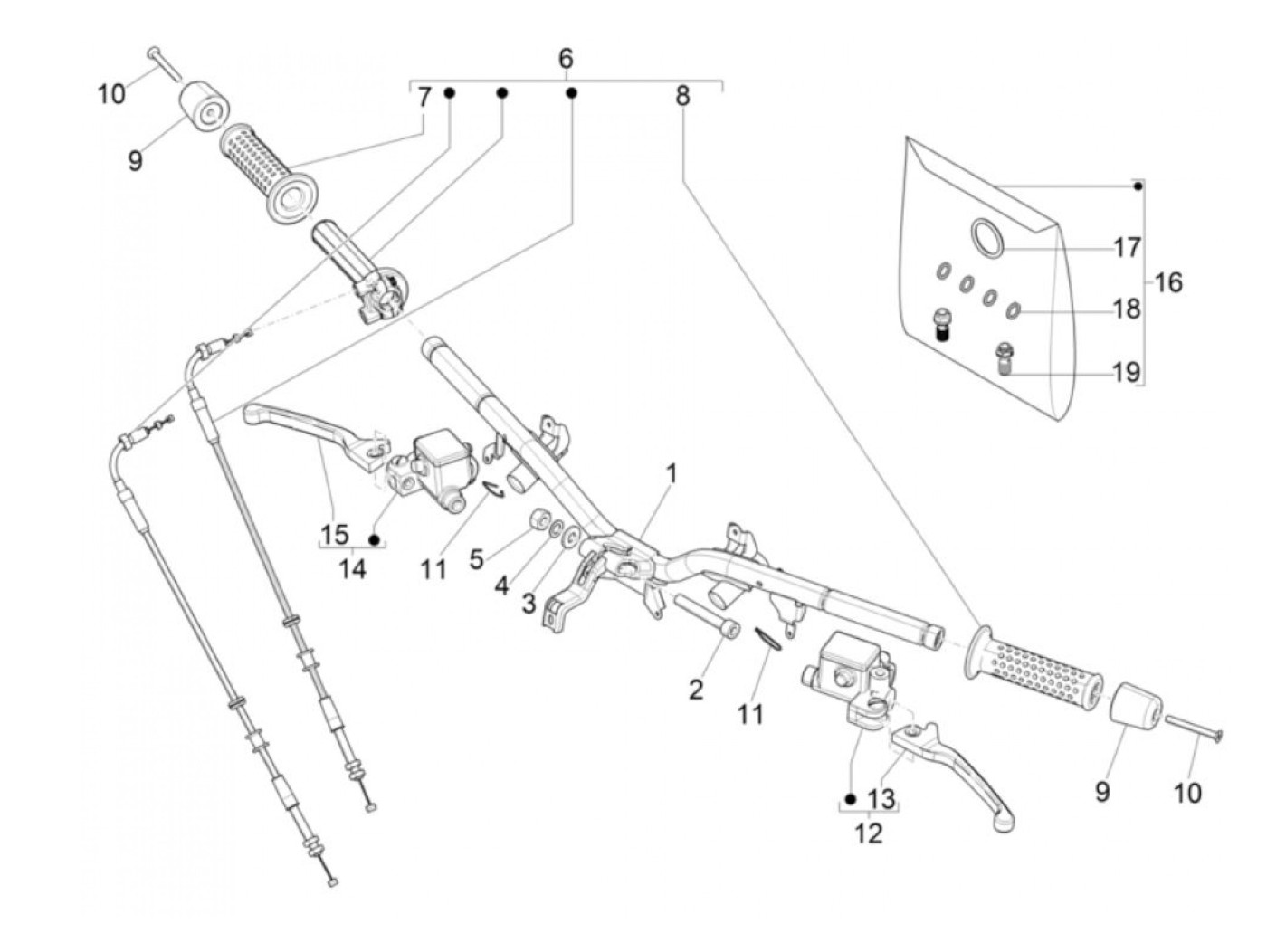 Gashandgreep en gaskabels -PIAGGIO- Vespa GTS HPE 300 (ZAPMA3600, ZAPMD310), Vespa GTS Super HPE 300 (ZAPMA360, ZAPMD3100)
