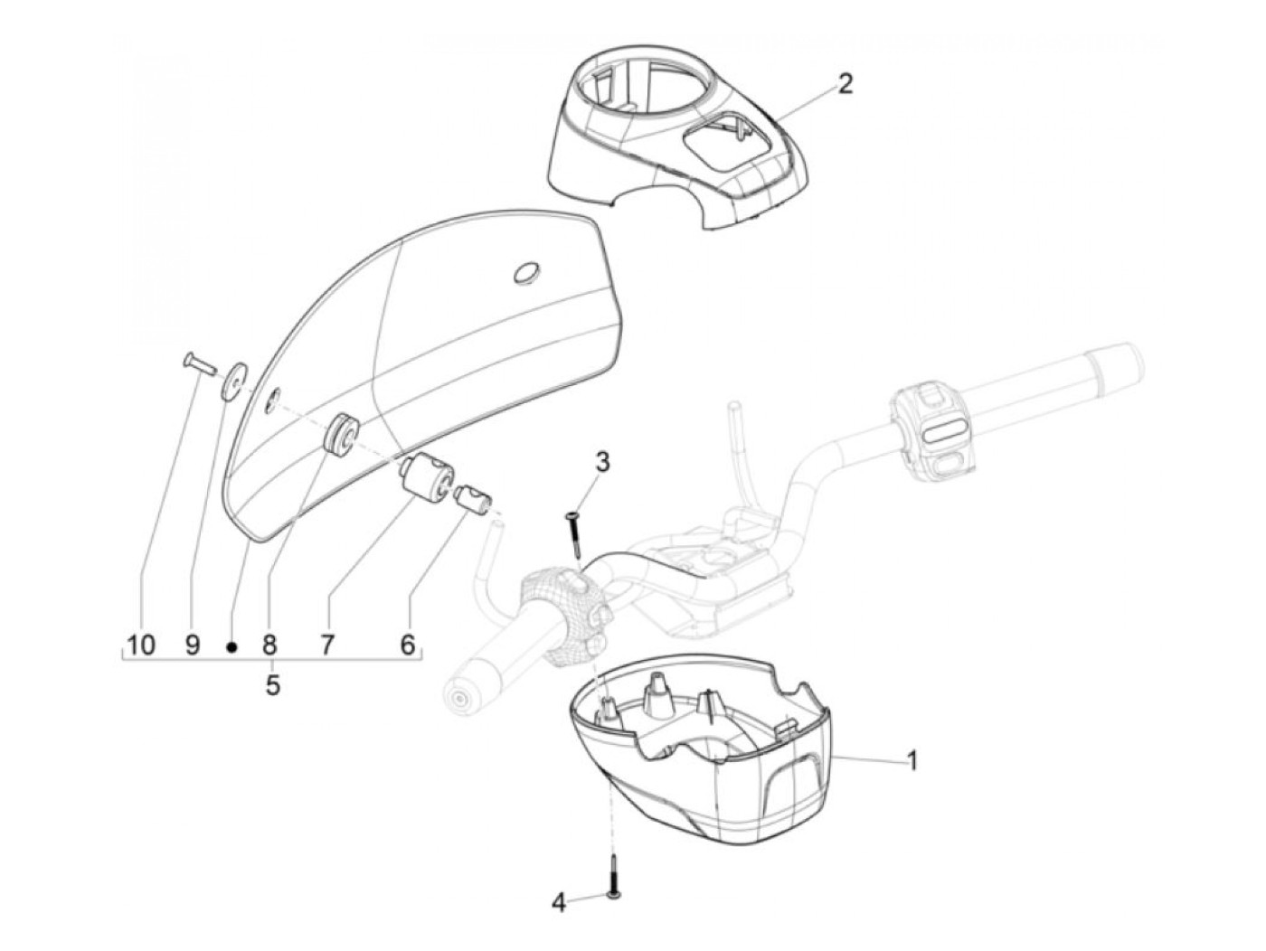 Stuurkuip boven -PIAGGIO- Vespa GTV 125 (ZAPM31301), Vespa GTV 250 (ZAPM45102), Vespa GTV 300 (ZAPM45201, ZAPMA3302), Vespa GTV HPE 300 (ZAPMA3602, ZAPMA362, ZAPMD3102)