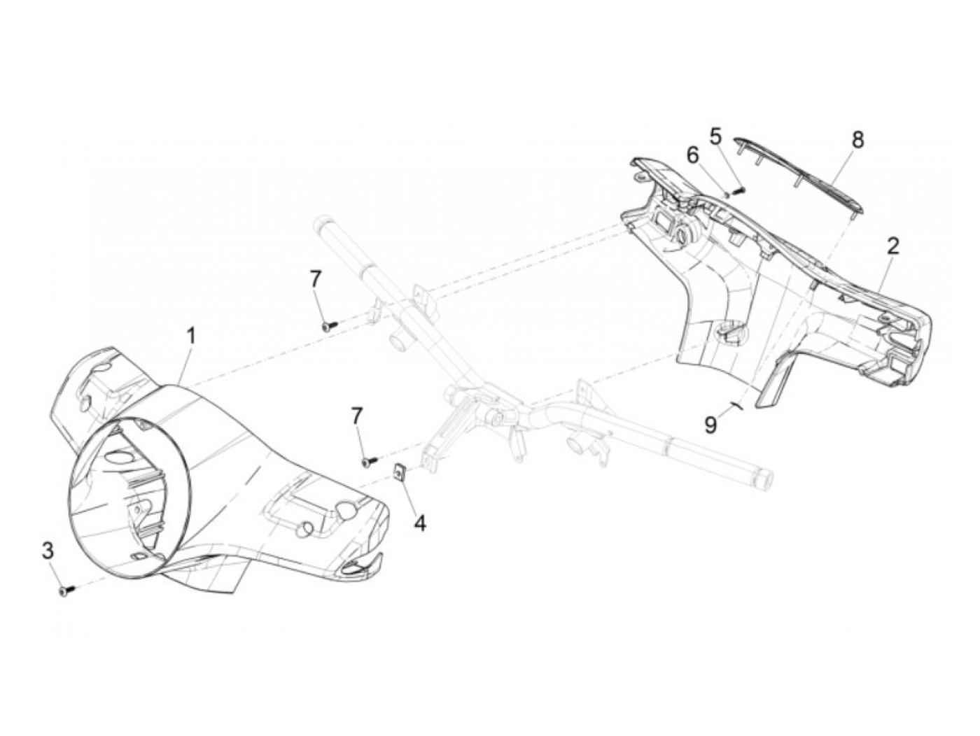 Voorste stuurkuip gegrond -PIAGGIO- Vespa GTS 125 (ZAPMA3700), Vespa GTS HPE 300 (ZAPMA3600, ZAPMD310), Vespa GTS Super 125 (ZAPMA3700), Vespa GTS Super HPE 300 (ZAPMA360, ZAPMD3100)