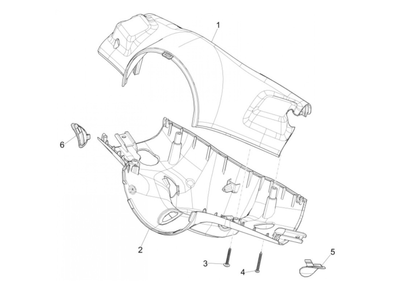 Balhoofddeksel, onder -PIAGGIO- Vespa Primavera 125 (ZAPMA1100, ZAPMA1101, ZAPMD1100), Vespa Primavera 150 (ZAPMD120), Vespa Primavera 50 (ZAPCA0100, ZAPCA0200, ZAPCA0102, ZAPCA0202, ZAPCD020, ZAPCD010), Vespa Elettrica Elektro (ZAPCB0100, ZAPMA9101,