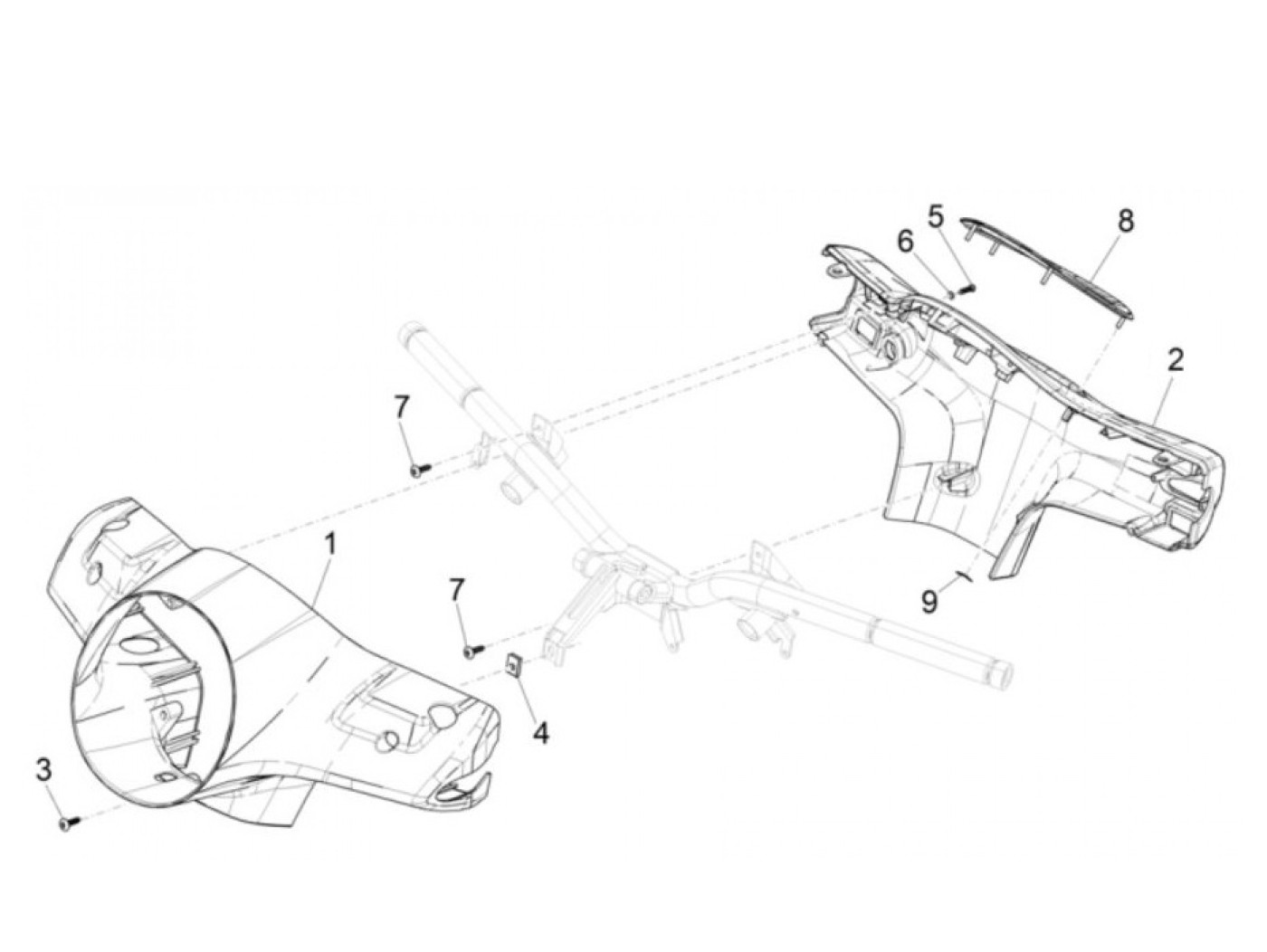Voorste stuurkuip gegrond -PIAGGIO- Vespa GTS 125 (ZAPMA3700), Vespa GTS HPE 300 (ZAPMA3600, ZAPMD310), Vespa GTS Super 125 (ZAPMA3700), Vespa GTS Super HPE 300 (ZAPMA360, ZAPMD3100)