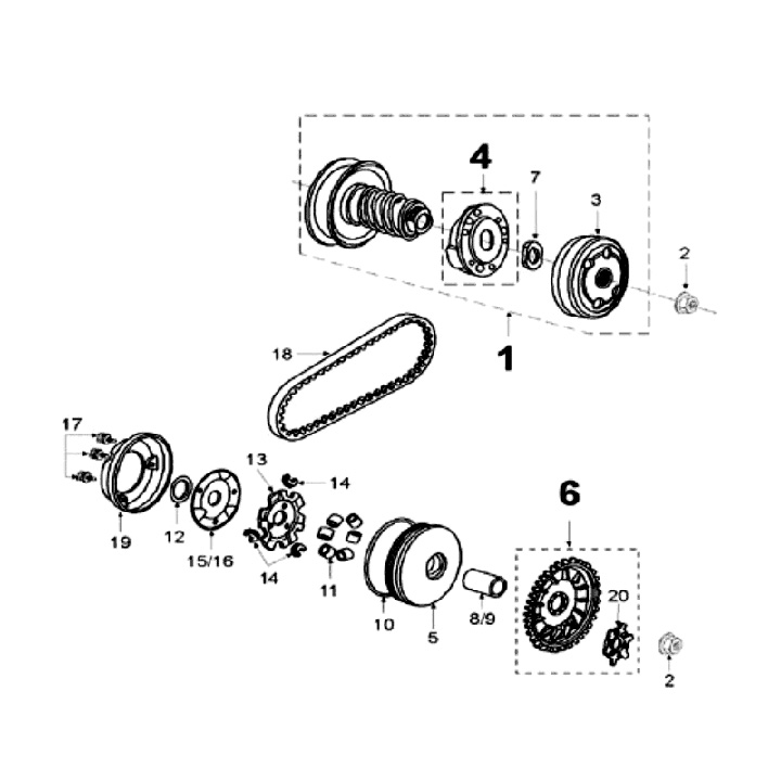 Clutch -PIAGGIO- Piaggio 125-150cc 2-stroke - Gilera Runner 125 (ZAPM07000), Piaggio Hexagon 125 (EXS1T, ZAPM05000), Piaggio Hexagon 150 (EXV1T), Piaggio Skipper 125 (ZAPM12000), Piaggio Skipper 150 (ZAPM13000), Piaggio SKR 125 (CSM1T), Piaggio SKR 150 (C