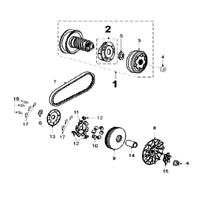 Clutch -PIAGGIO- Piaggio 125-150cc 2-stroke - Gilera Runner 125 (ZAPM07000), Piaggio Hexagon 125 (EXS1T, ZAPM05000), Piaggio Hexagon 150 (EXV1T), Piaggio Skipper 125 (ZAPM12000), Piaggio Skipper 150 (ZAPM13000), Piaggio SKR 125 (CSM1T), Piaggio SKR 150 (C
