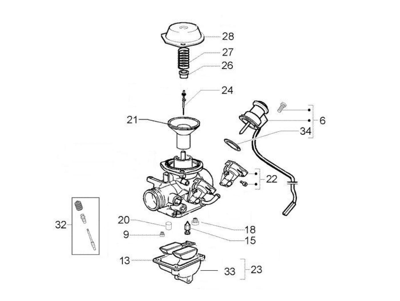Carburatornaald -PIAGGIO- Keihin NJHA - Vespa ET4 125, LX 125-150, S 150, Piaggio Fly 125-150, Liberty 125-200, Aprilia Mojito 125, Derbi Boulevard 125-200