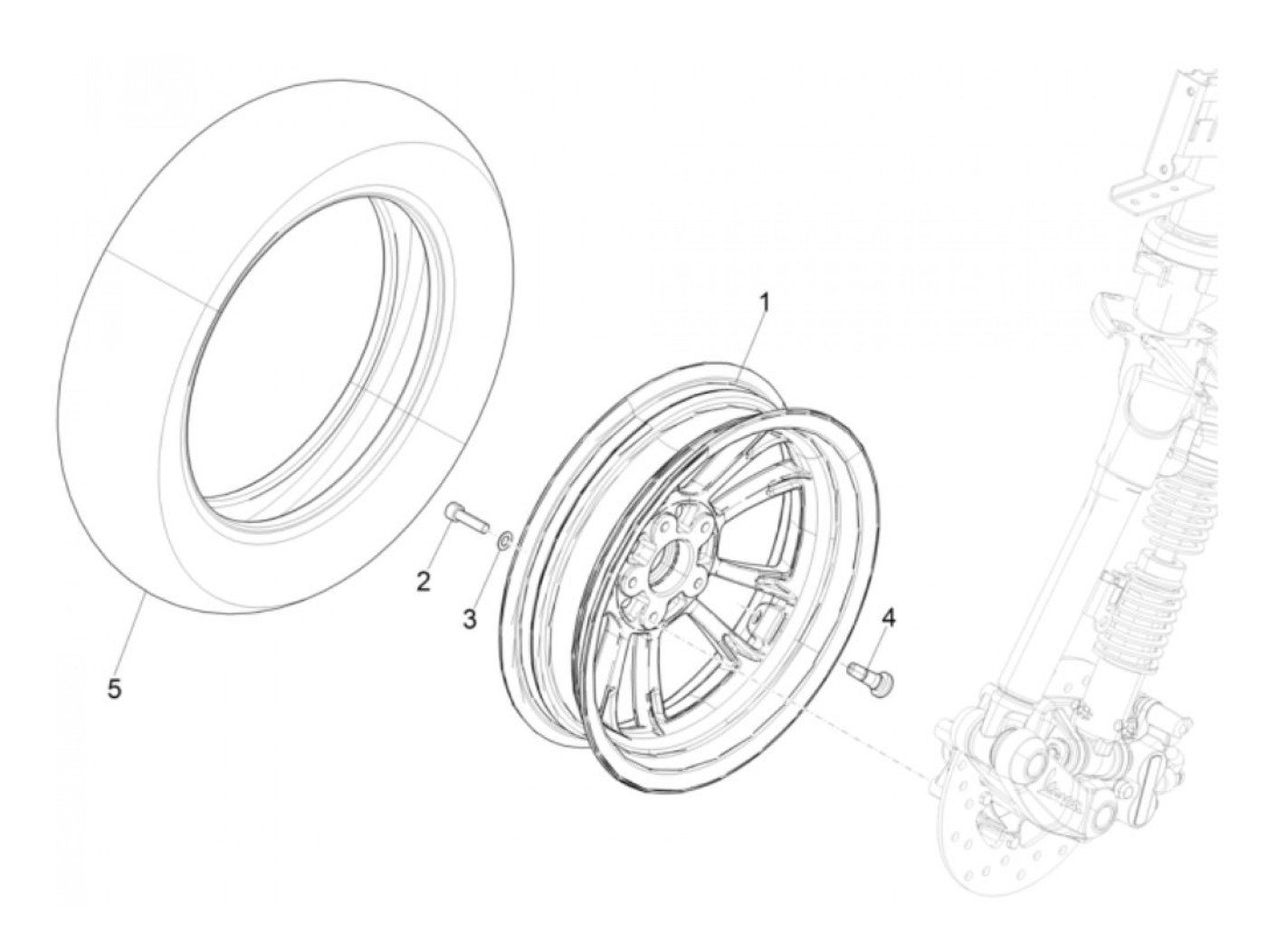 Voorvelg, zilver -PIAGGIO 3.00-12 inch - 10 spaken- Vespa Primavera 125 (ZAPMA1100, ZAPMA1101, ZAPMD1100), Vespa Primavera 150 (ZAPMA1200, ZAPMA1201, ZAPMD120), Vespa Primavera 50 (ZAPCA0100, ZAPCA0102, ZAPCA0200, ZAPCA0202, ZAPCD010, ZAPCD020)