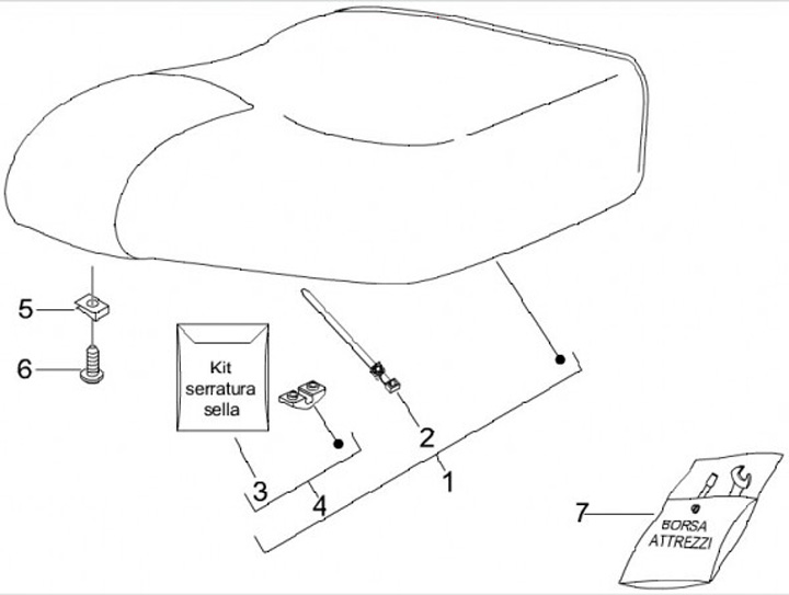 Zadelvergrendelingsgeleider -PIAGGIO- Vespa LX 50-150, LXV 50-125, S 50-150, VX 150, VXL 125-150, Piaggio Beverly 125-250, Fly 50-150, Liberty 50-200, TPH 50-125, Aprilia Sport City 50-125