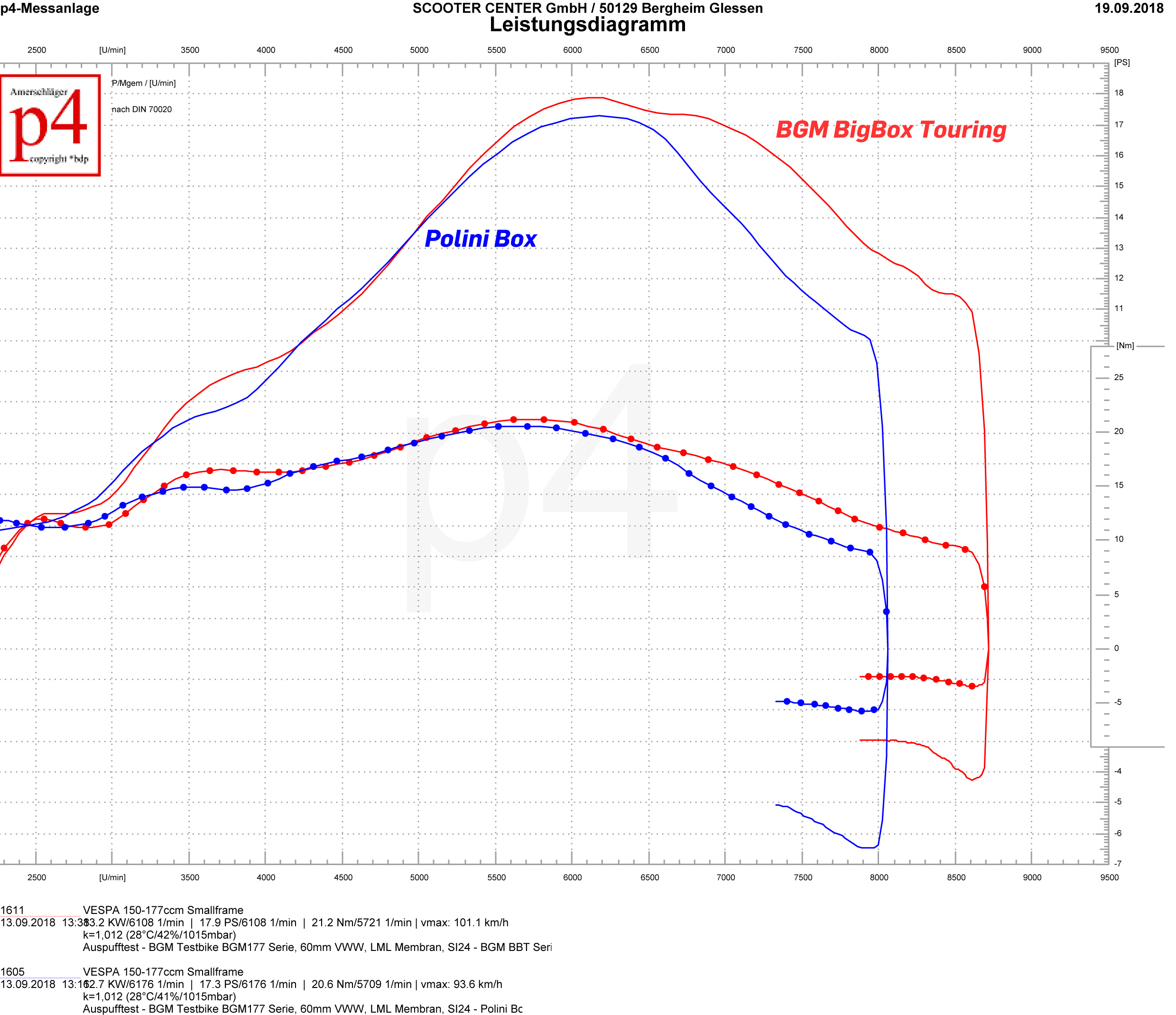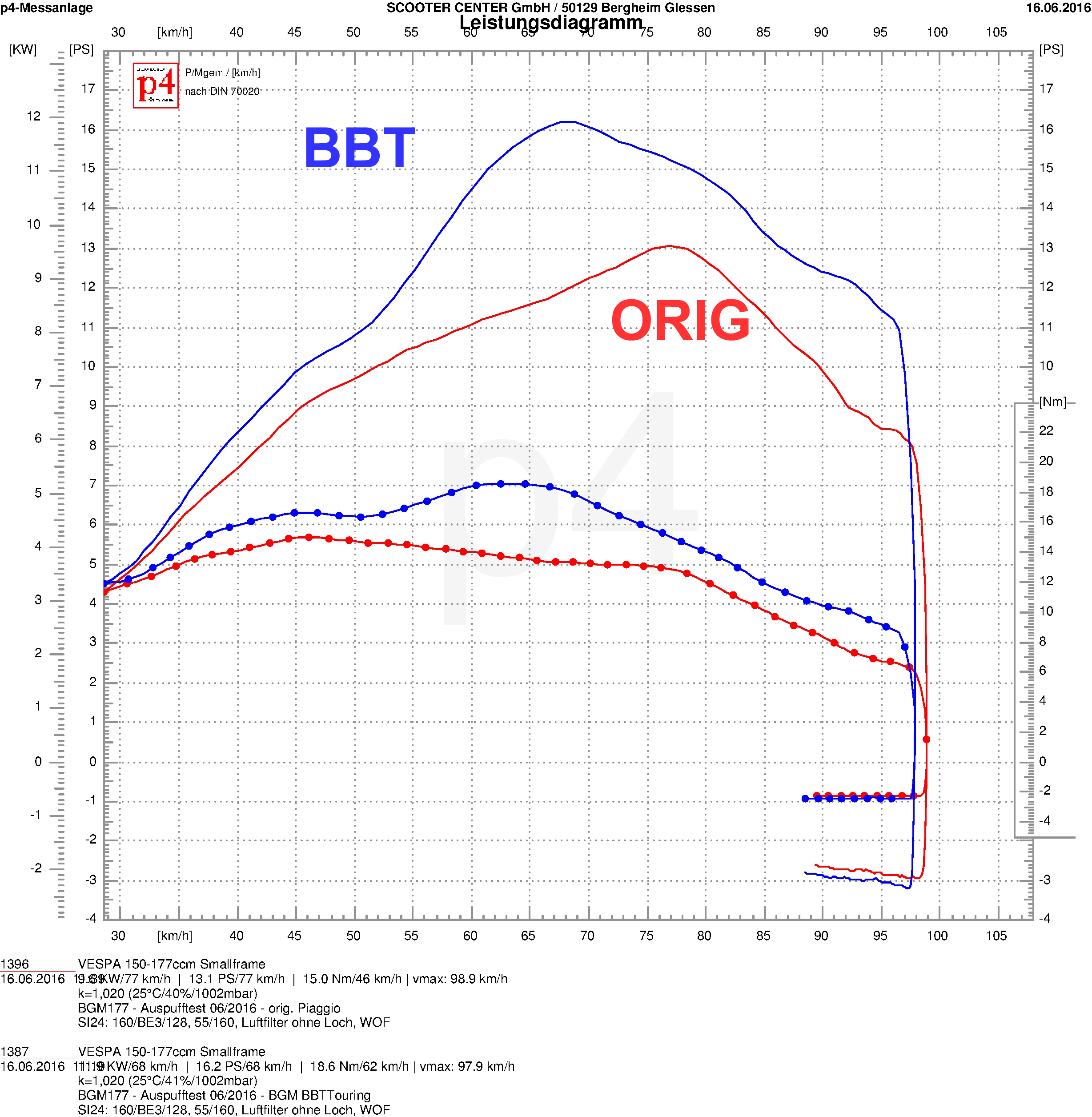 La potencia de su motor PX125 o PX150 puede ser más que duplicada simplemente sustituyendo el cilindro de serie. El cilindro proporciona un par motor inmediatamente perceptible, ideal para salidas relajadas con reserva. Al mismo tiempo, el BGM PRO 177 es adecuado como base para aumentos integrales de rendimiento: hasta más de 20 CV en la rueda trasera son posibles, manteniendo el mismo nivel de fiabilidad.