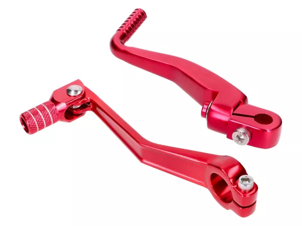 Klappbarer Aluminium-Schalthebel und -Kickstarter im Set rot eloxiert passend für Simson S50, S51, S70, S53, S83.