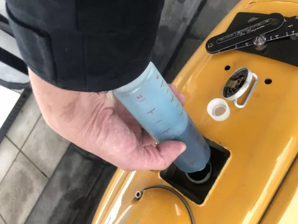 No se ve nada..... ¡Oh, no! Ahora el depósito está más que lleno y ya no queda espacio para el aceite.