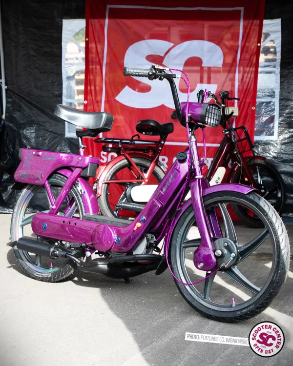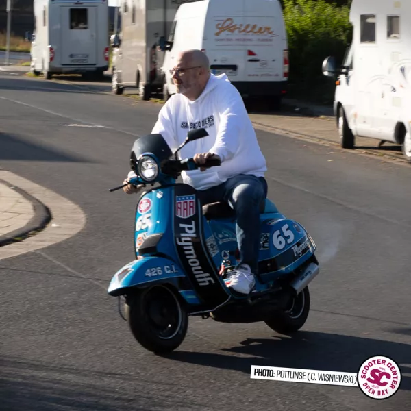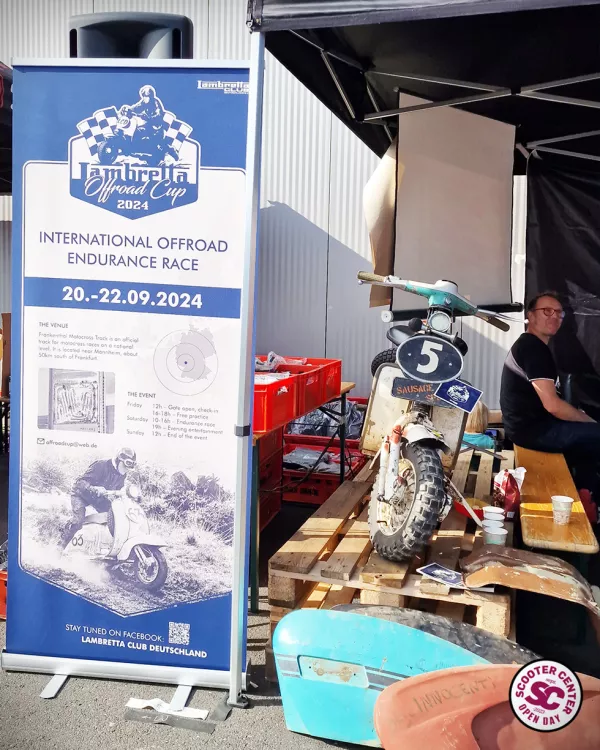 Meisi (Marc Meis) memarkir Lambretta paling kuat di atas roller. Marc membangun kembali Targa-Twin dari awal dengan komponen pilihannya dan menghasilkan 40 hp.