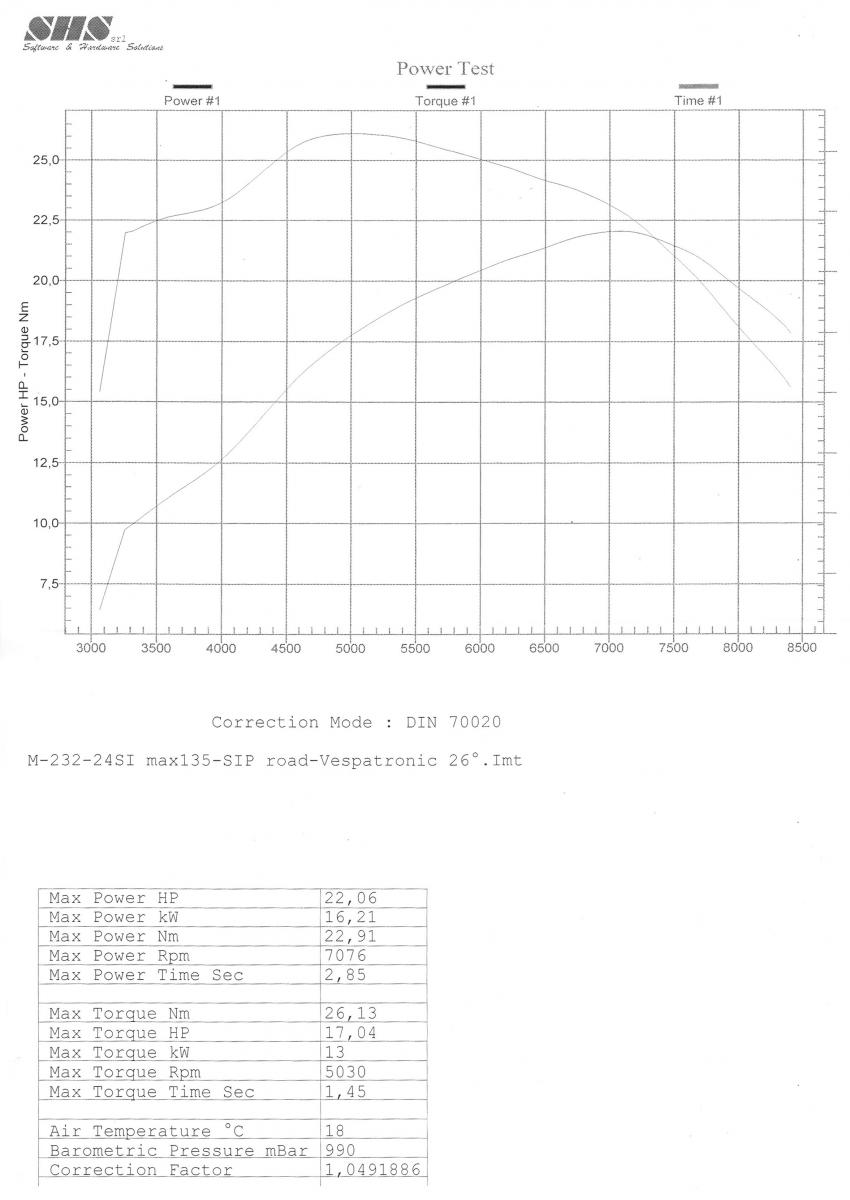 Designed for use with the original carburetor and touring exhaust, it reaches already over 20hp and a full 24Nm at the rear wheel. An original PX200 GS with 12hp/9kW registered in the papers rarely exceeds 10hp and 15NM at the rear wheel.
