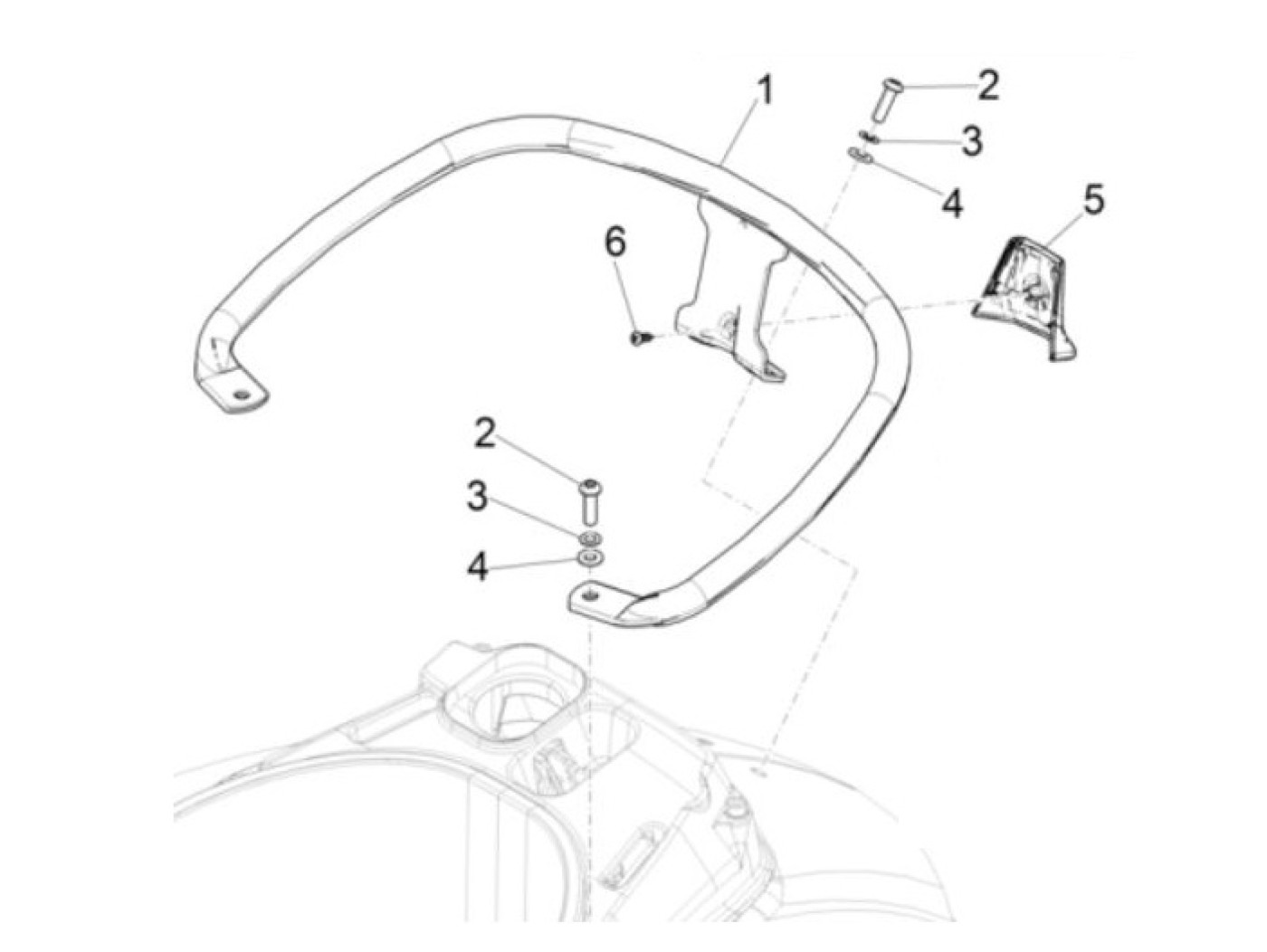 Skydd för bakre bagagehållare/fäste, krom -PIAGGIO- Vespa GTS 125 (ZAPMA3700), Vespa GTS HPE 300 (ZAPMA3600, ZAPMD310), Vespa GTS Super 125 (ZAPMA3700), Vespa GTS Super HPE 300 (ZAPMA360, ZAPMD3101, ZAPMD3100), Vespa GTV HPE 300 (ZAPMA3602, ZAPMA3