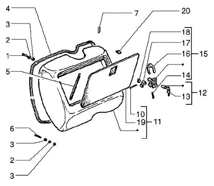 Lås till bagageutrymmet -PIAGGIO- Vespa PX Lusso (från 1984), T5 125cc, PK XL