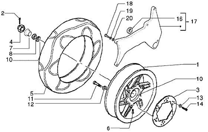 Bakhjulsmutter -PIAGGIO- Vespa PX (från 1984), T5 125cc, PK XL, Cosa, Piaggio automatisk, Gilera automatisk