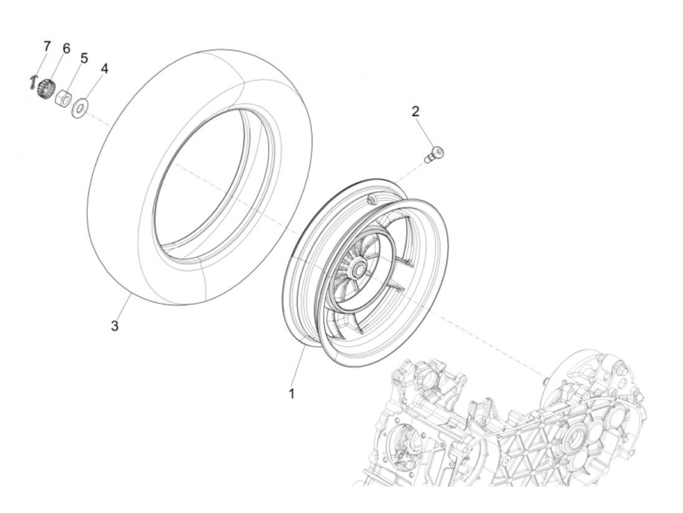 Bakfälg, silver -PIAGGIO 3.00-12 tum, Ø bromstrumma = 140 mm - 10 ekrar- Vespa Primavera 125 (ZAPMA1100, ZAPMA1101, ZAPMD1100), Vespa Primavera 150 (ZAPMA1200, ZAPMA1201, ZAPMD120)