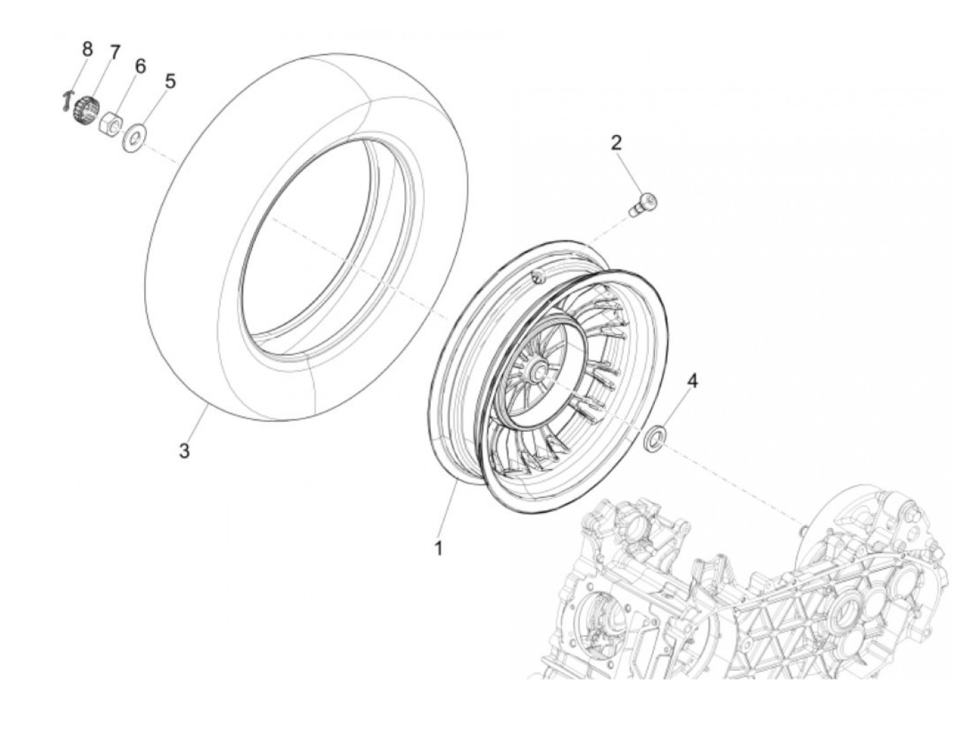 Bakhjulsmutter -PIAGGIO- Vespa PX (från 1984), T5 125cc, PK XL, Cosa, Piaggio automatisk, Gilera automatisk