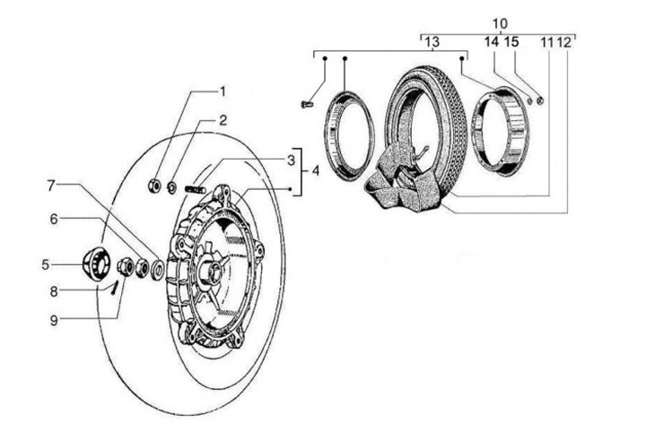 Bakre bromstrumma 10 tum -PIAGGIO- Vespa PX (1988-), T5 125cc - Filtring 31,5mm (invändig oljetätning)