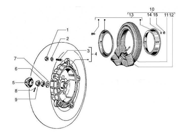 Bakre bromstrumma 10 tum -PIAGGIO- Vespa PX (1988-), T5 125cc - Filtring 31,5mm (invändig oljetätning)