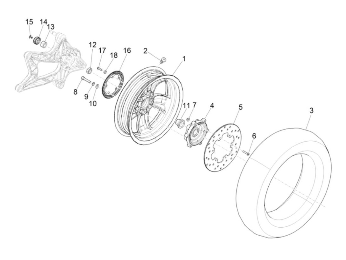 Distans i fälg för ABS-ring -PIAGGIO- Vespa GT, GTL, GTS, GTV 125-300cc - med ABS - bak (5x krävs)