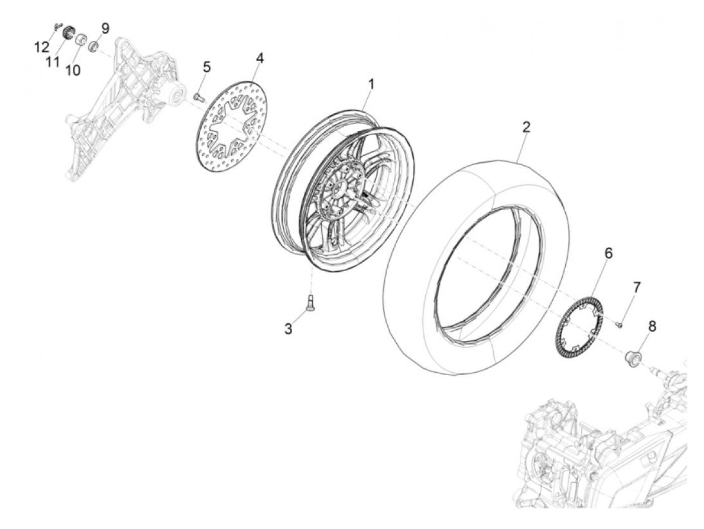 Bakhjulsmutter -PIAGGIO- Vespa PX (från 1984), T5 125cc, PK XL, Cosa, Piaggio automatisk, Gilera automatisk