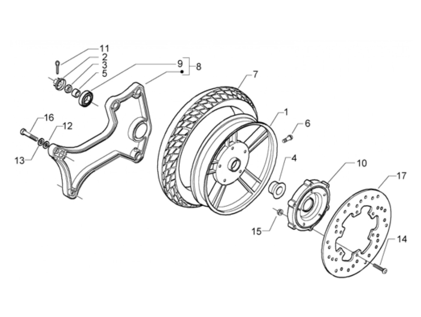 Fälg -PIAGGIO GTS125-300 - silver, (3.00x12) - 5 ekrar - passar Vespa GT, GTL, GTS, GTV 125-300cc - fram (alla år) och bak (2014-2016)