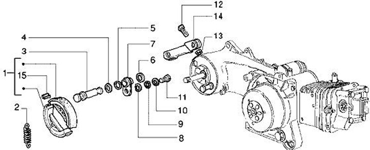 Bakre bromskam -PIAGGIO- alla Piaggio/Gilera 50-125 ccm-modeller med 110 mm bromsbeläggdiameter