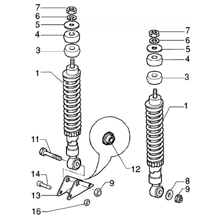 Bussning för bakre stötdämpare, vänster -PIAGGIO- Vespa GT 250 (ZAPM45102), Vespa GT L 125 (ZAPM31101), Vespa GTS 125 (ZAPM31300, ZAPMA3100, ZAPMA3200, ZAPMA3700), Vespa GTS 150 (ZAPMA3200, ZAPMA3100), Vespa GTS 250 (ZAPM45100, ZAPM45101), Vespa GTS 300 (