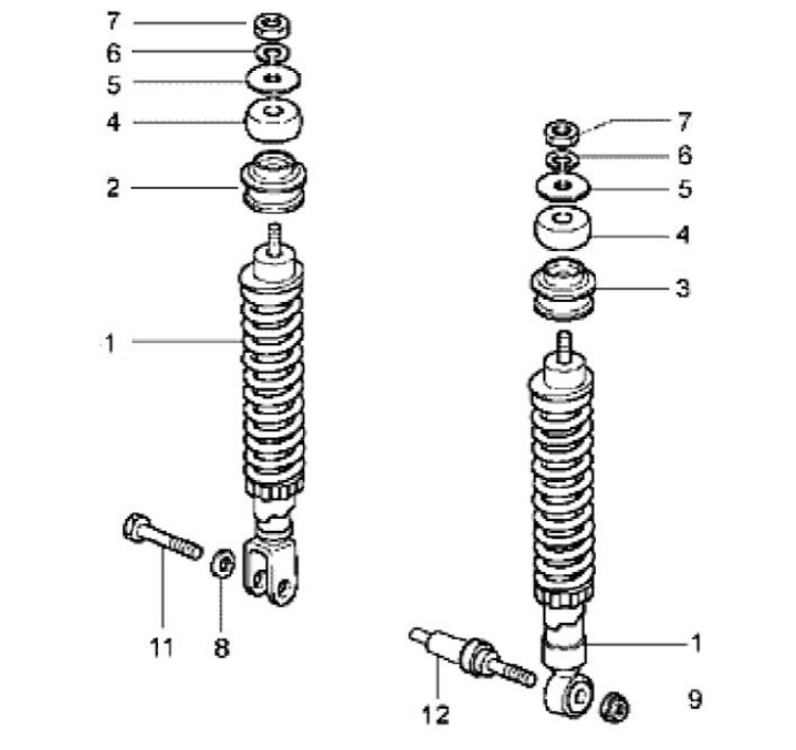 Tyst gummistötdämpare bakre topp (övre tunt gummi) -PIAGGIO 12x31x18mm- Vespa PK S-XL, Cosa, GT, GTS 125-300, GTL, GTV, LX, LT, LXV, Primavera, Sprint, ET2, ET4