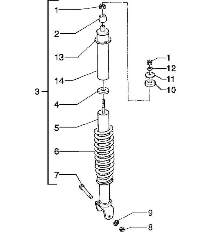 Stoppgummi - Gummibuffert för stötdämpare -PIAGGIO- Piaggio TPH, SKR, Sfera, NRG, Vespa Smallframe V50, PV, ET3 - Bakre stötdämpare (skjuts över kolvstången)