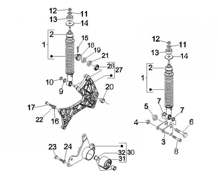 Fäste för motorns svängarm -PIAGGIO- Vespa GT 250 (ZAPM45102), Vespa GTS 250 (ZAPM45100, ZAPM45101), Vespa GTS 300 (ZAPM45200, ZAPM45202, ZAPMA3300), Vespa GTS HPE 300 (ZAPMA3600, ZAPMD310), Vespa GTS Super 300 (ZAPM45200, ZAPM45202, ZAPMA3300), Vespa GTS