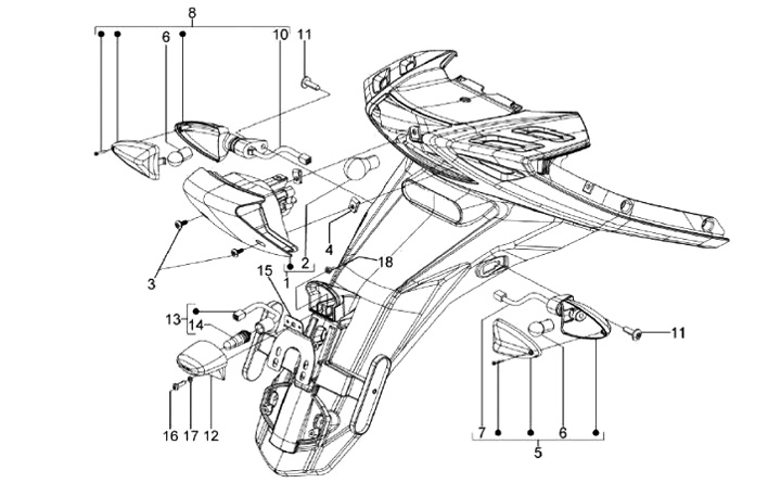 Bakljus -PIAGGIO- Ny TPH 50-125 (LBMC501, LBMM701), Aprilia SR Motard 50-125