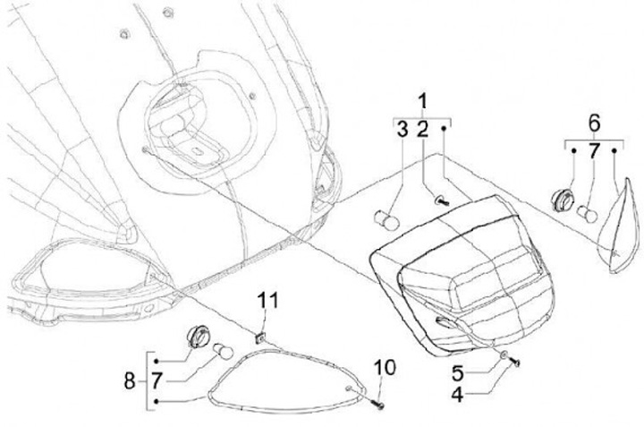 Blinkers -PIAGGIO- Vespa LX, LXV, S - vit - klarglas - bak, höger