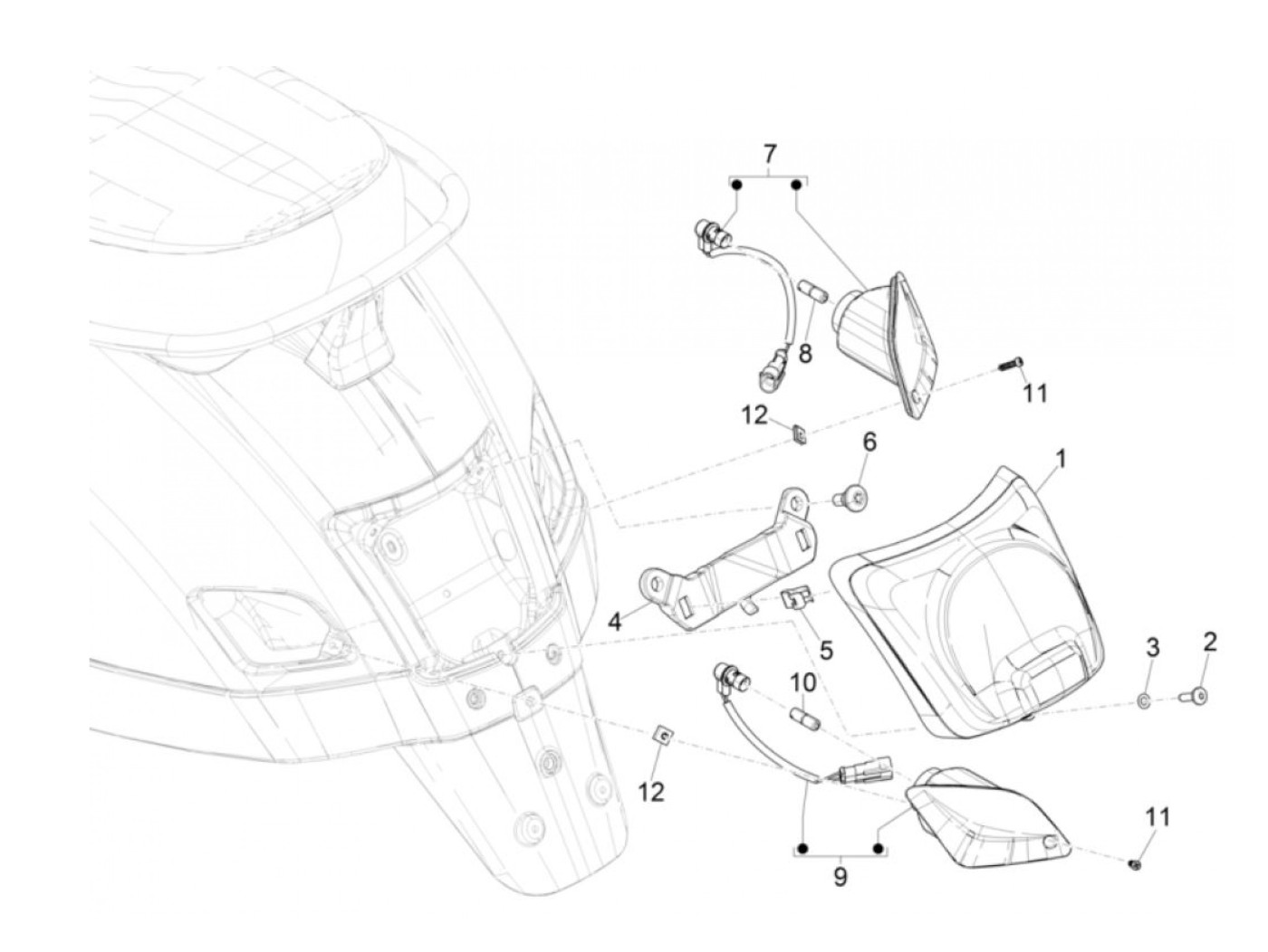 Fäste för bakljus -PIAGGIO- Vespa GTS 125 (ZAPMA3700), Vespa GTS HPE 300 (ZAPMA3600, ZAPMD310), Vespa GTS Super 125 (ZAPMA3700), Vespa GTS Super HPE 300 (ZAPMA360, ZAPMD3100), Vespa GTV HPE 300 (ZAPMA3602, ZAPMA362, ZAPMD3102)