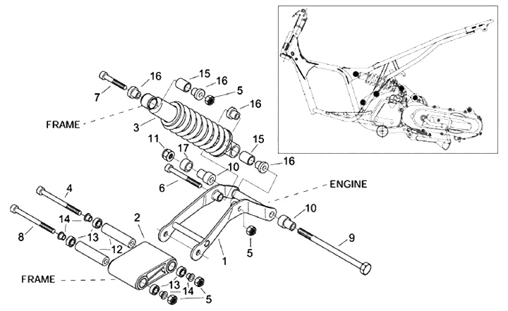 Stötdämparfäste -MALOSSI- Vespa PK S-XL, Vespa ET2, ET4, Piaggio Sfera, Sfera RST, Zip SP